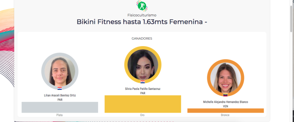 En la gran final de "Bikini Fitness" hasta 1.63 metros, Silvia Patiño fue la ganadora de la competencia, siendo medalla de oro. pero eso no fue todo, ya que la también paraguaya Araceli Benítez se quedó con la presea de Plata, consiguiendo así el tercer podio para el equipo guaraní dentro de los Juegos Odesur 2022.