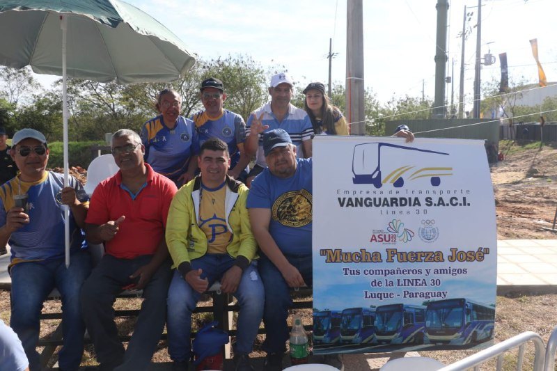 Foto: Los compañeros de trabajo de Centurión, apoyando al deportista. Gentileza.